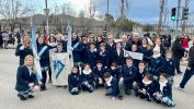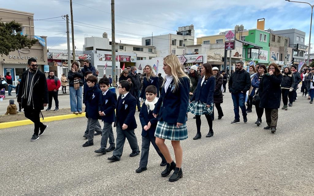 La presencia de Instituciones educativas con sus banderas engalanó el día patrio y pintó de celeste y blanco el frío día de Julio.-