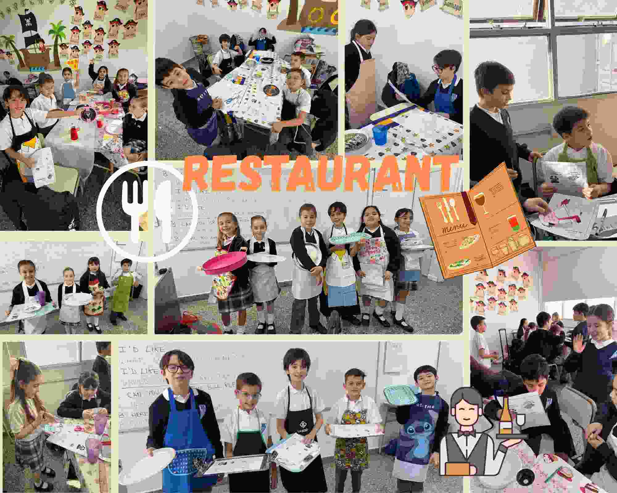 Nuestros alumnos de 3.º grado de inglés se divirtieron en un role play de restaurante, actuando como mozos y comensales mientras repasaban vocabulario y frases para pedir y ofrecer comida.