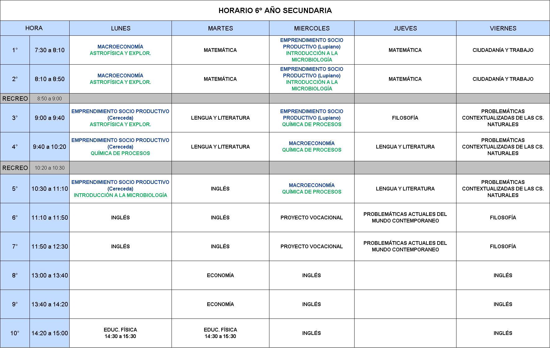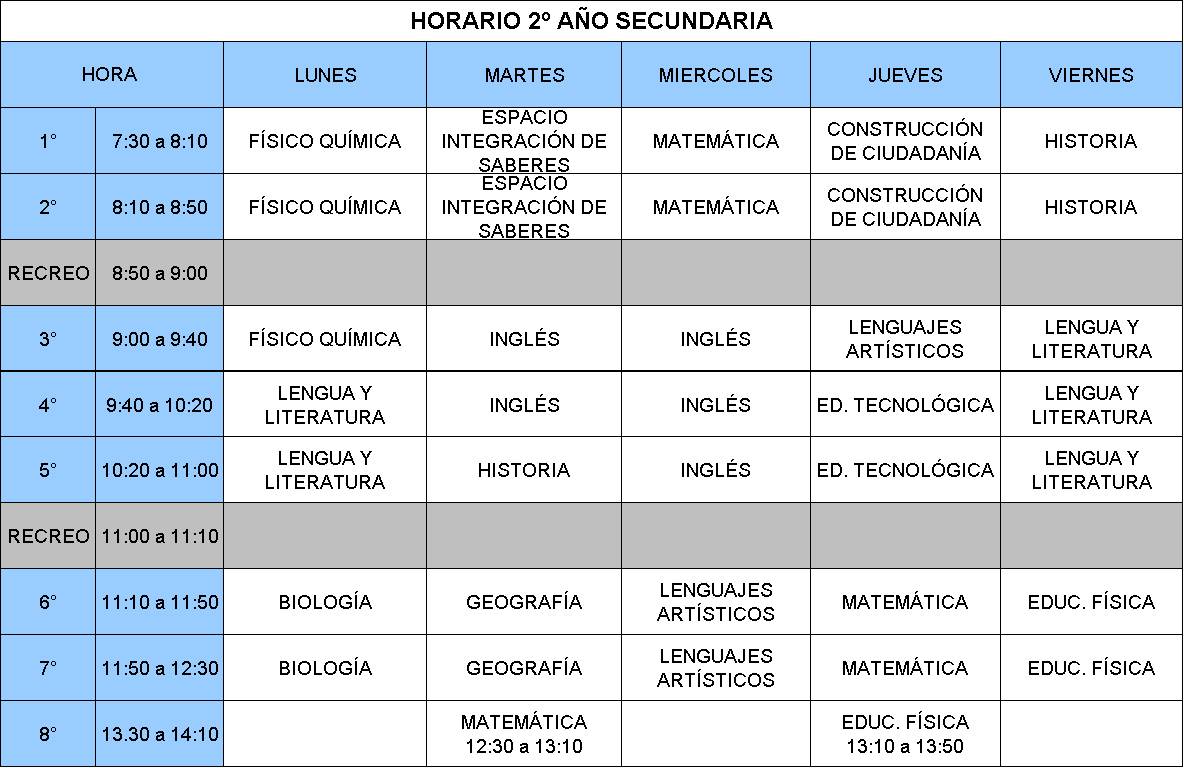 Horarios Secundaria - Ciclo Lectivo 2022.-