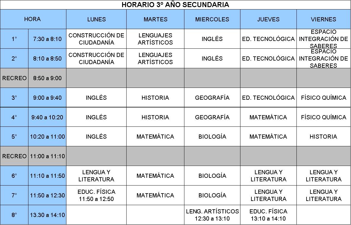 HORARIOS NIVEL SECUNDARIO