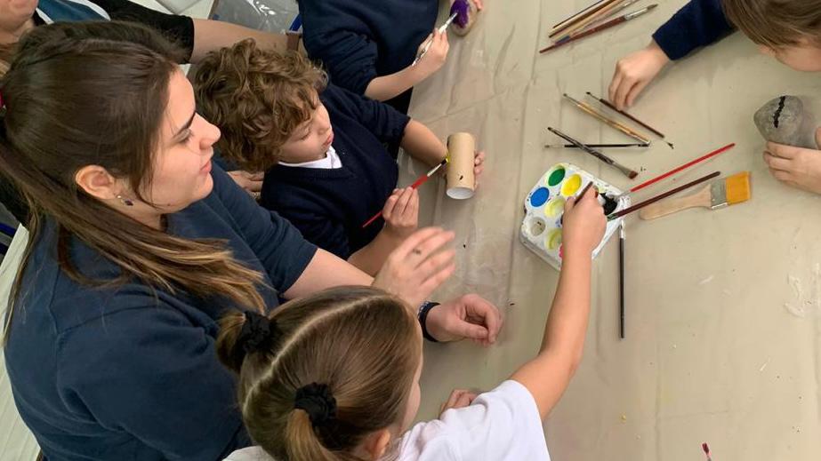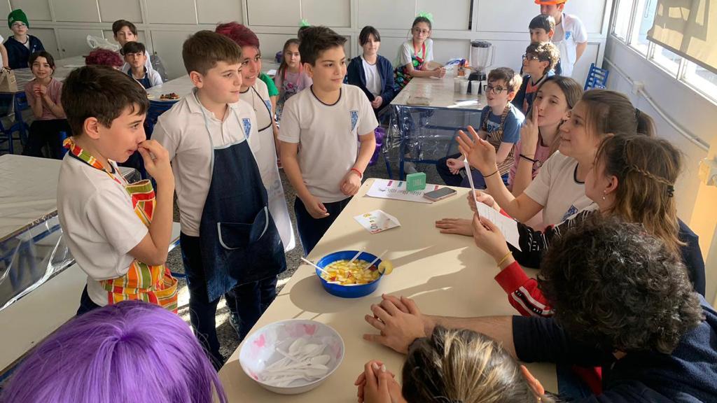 Con su iniciativa propia y el acompañamiento de las docentes del área, los chicos y chicas han llevado adelante parte de sus proyectos en su comunidad más cercana: su escuela. A partir de ello han podido compartir con los niños y niñas del turno tarde diversas actividades y talleres: Taller Arte y Ecología (1er y 2do grado) Taller de Fútbol (3er grado), Taller Deportivo-Recreativo (4to grado), Taller de alimentación saludable “Healthy MasterChef” (5to grado), Taller Bienvenida a la Secundaria -formación en ESI- (6to grado). Dichas actividades se desarrollaron en días previos y posteriores al receso escolar y finalizaron con la participación de los estudiantes como guías de los niños en la jornada del Día de las Infancias, donde compartieron su alegría y frescura.